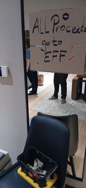 Before SCaLE 23x, I received some unexpected e-mail inviting me to the EFF speakeasy, also giving me a heads up on a keynote on Saturday morning, as if I was a member this whole time.