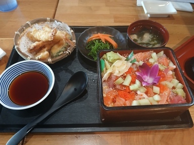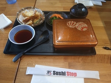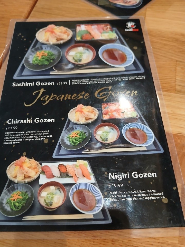 SushiStop featured the new menu items (“Gozen”). Without knowing what gozen actually means, this is somewhat similar to a poké bowl, but between the fish and the rice, there is a yellow like egg white edible layer that I haven’t identified. My best guess is shredded sweet bread.