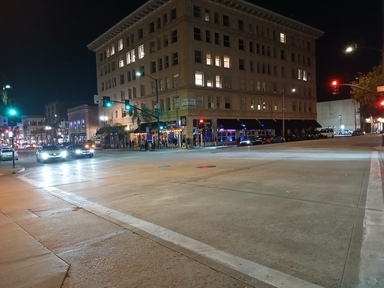 The one very weird thing about the penthouse room at Pasadena AC is that the bathroom door was glass. It was foggy enough to obscure details, but not enough for me to want to take a piss there while a party was going.